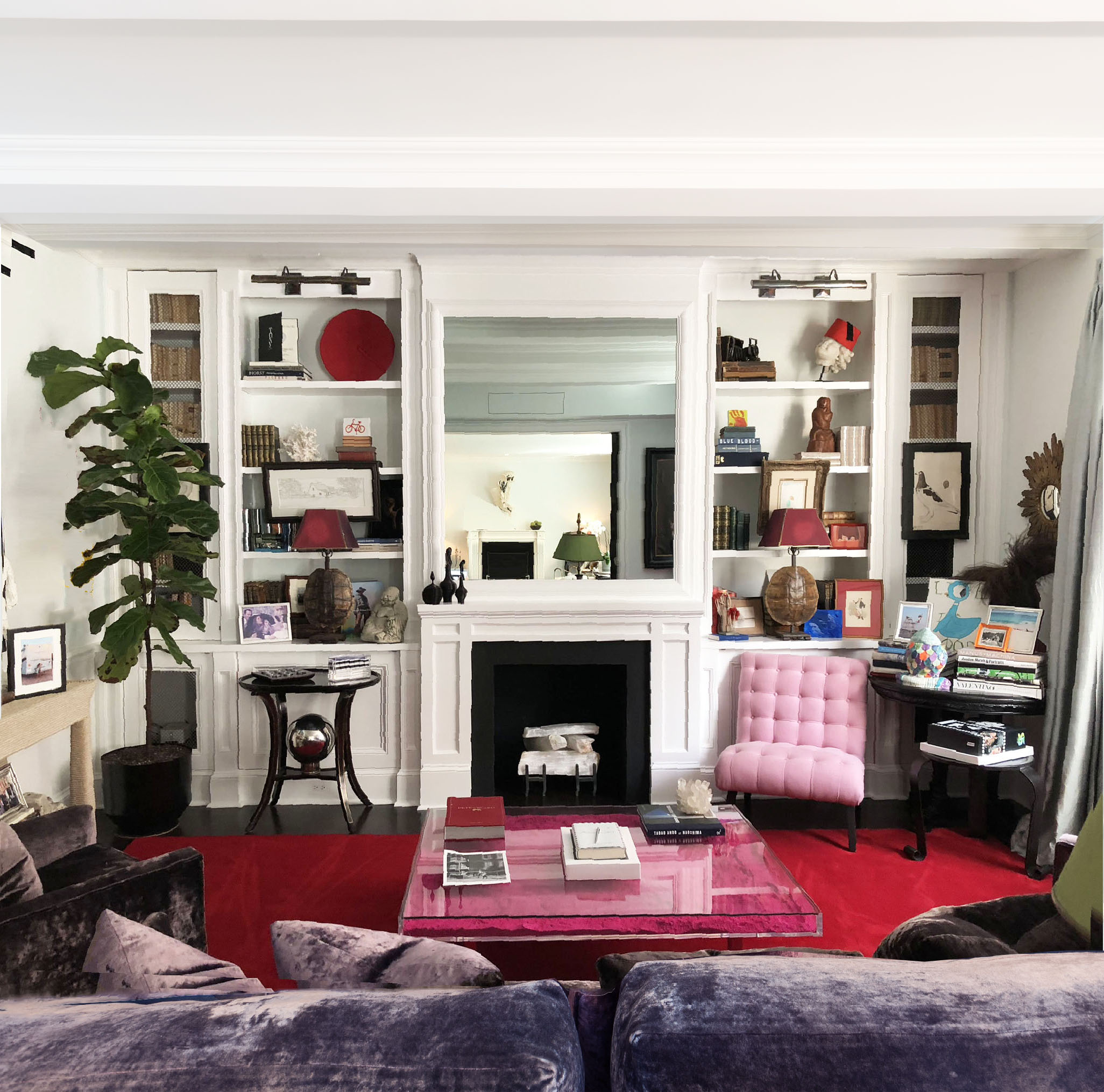 This space is designed to blend comfort with aesthetic charm. Various decorative elements, such as bookshelves filled with unique items, a vibrant red carpet, and plush furniture, all contribute to a cozy atmosphere. The arrangement promotes a welcoming and stylish environment, making it an ideal place for relaxation and socialization. This setting exemplifies how thoughtful decor can enhance both visual appeal and comfort in an interior space.