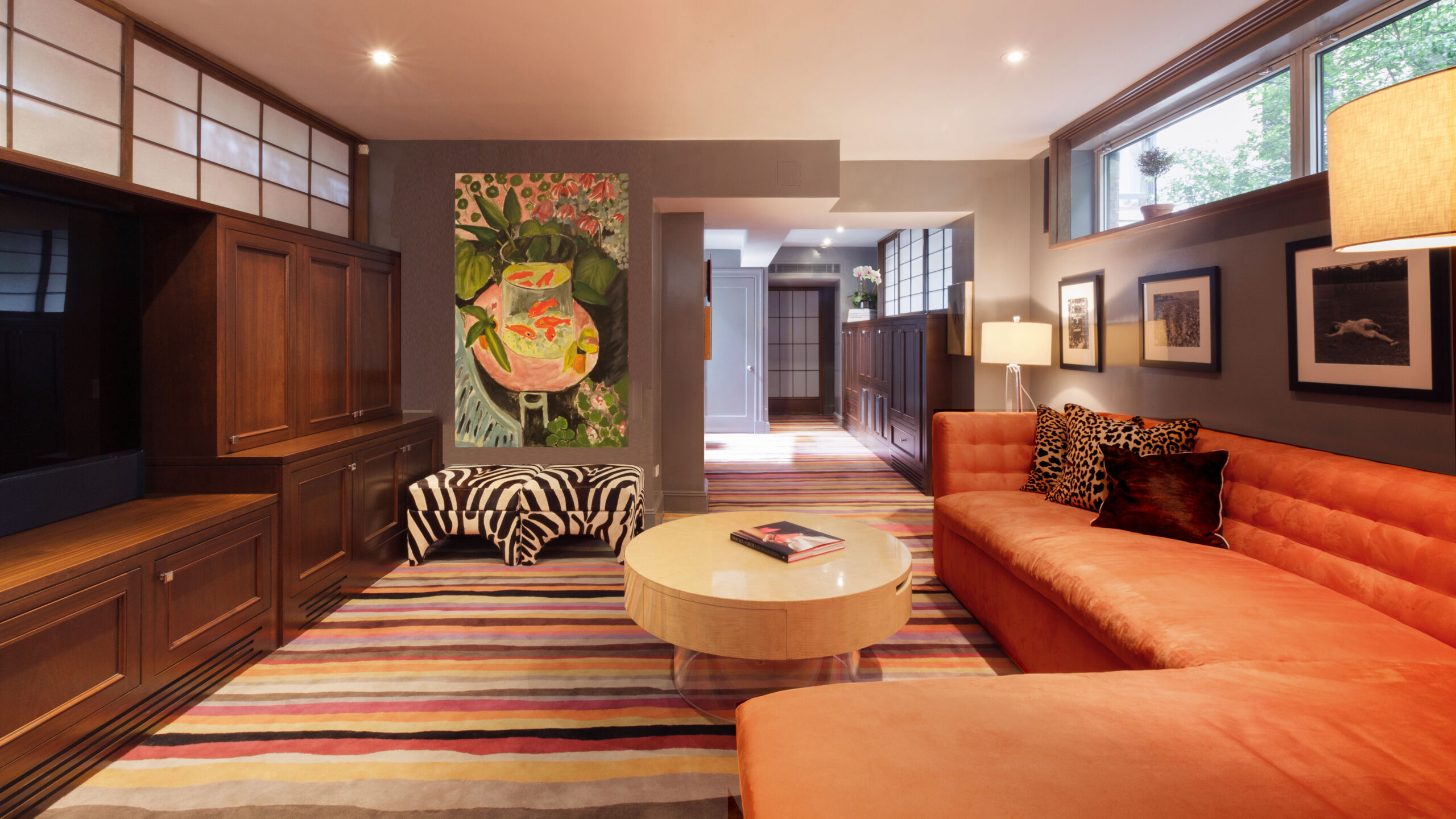 Creating a beautifully designed interior that emphasizes both functionality and aesthetic appeal to provide a warm and inviting space for modern families. Key deliverables include a spacious family room designed for relaxation and entertainment, the use of natural wood elements for warmth and texture, a functional and visually appealing callendering wall, a quality-crafted sofa as the room’s centerpiece, and a warm ambience achieved through strategic lighting and accessories. This design aims to elevate everyday living by harmonizing beauty with practical living.